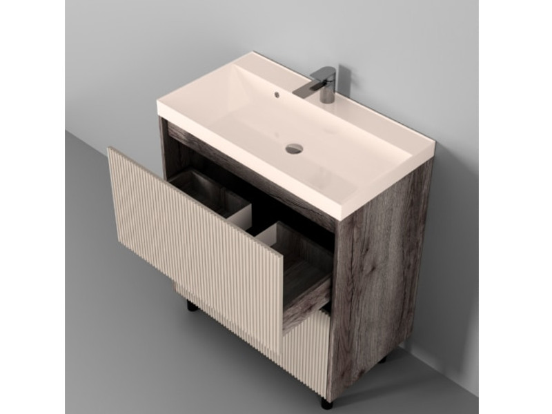 - Тумба Рица 80 напольная 2 ящика раковина Слим 80 cерый/керамика
