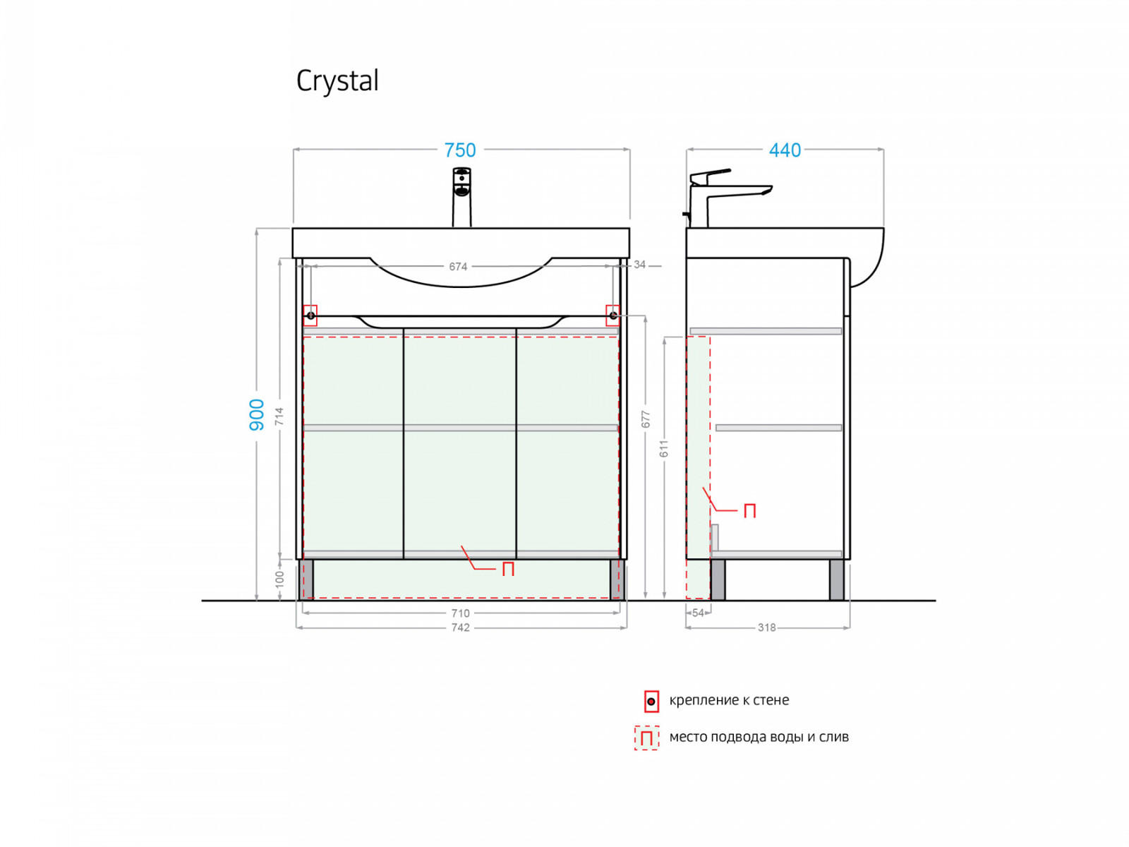 - Тумба с раковиной Crystal 75 белая