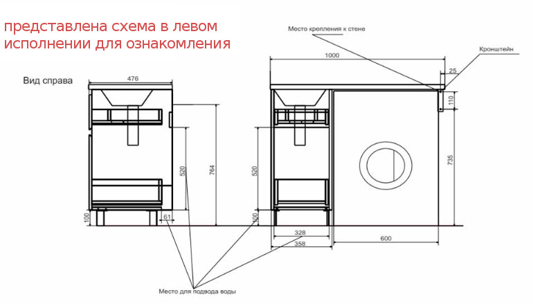 - Тумба с раковиной Dallas Luxe 1000 напольная 2 ящика правая