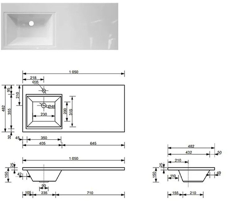 - Тумба с раковиной Dallas Luxe 1050 напольная 2 ящика левая