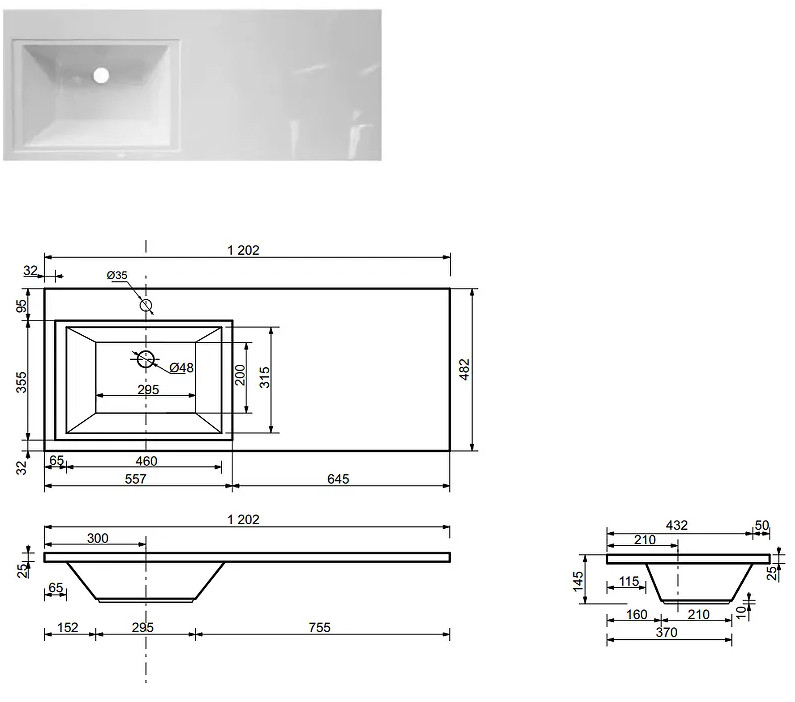 - Тумба с раковиной Dallas Luxe 1200 напольная 3 ящика левая