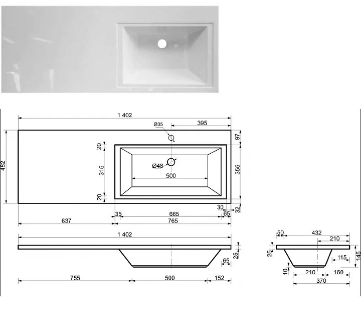 - Тумба с раковиной Dallas Luxe 1400 напольная 3 ящика правая