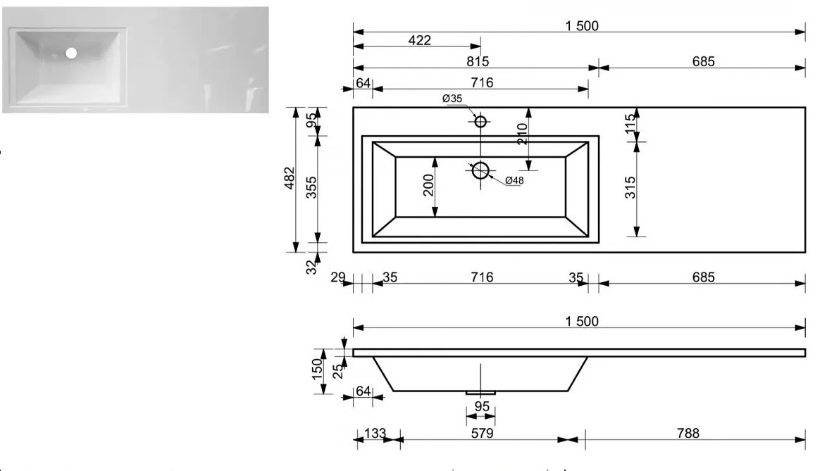 - Тумба с раковиной Dallas Luxe 1500 навесная 1 ящик левая