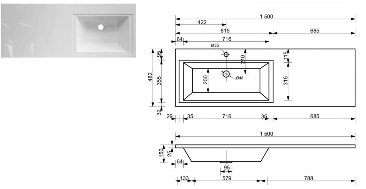 - Тумба с раковиной Dallas Luxe 1500 навесная 2 ящика правая