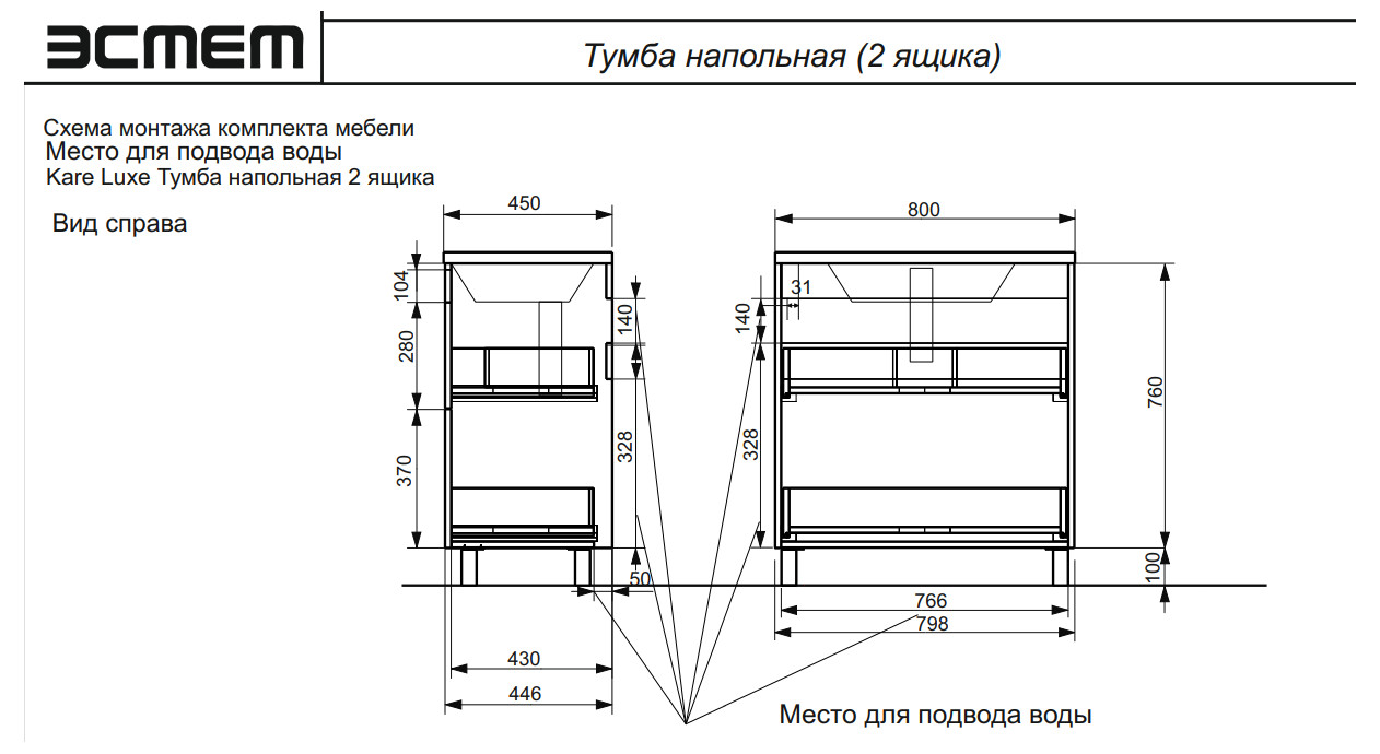 - Тумба с раковиной Kare Luxe 800 напольная 2 ящика