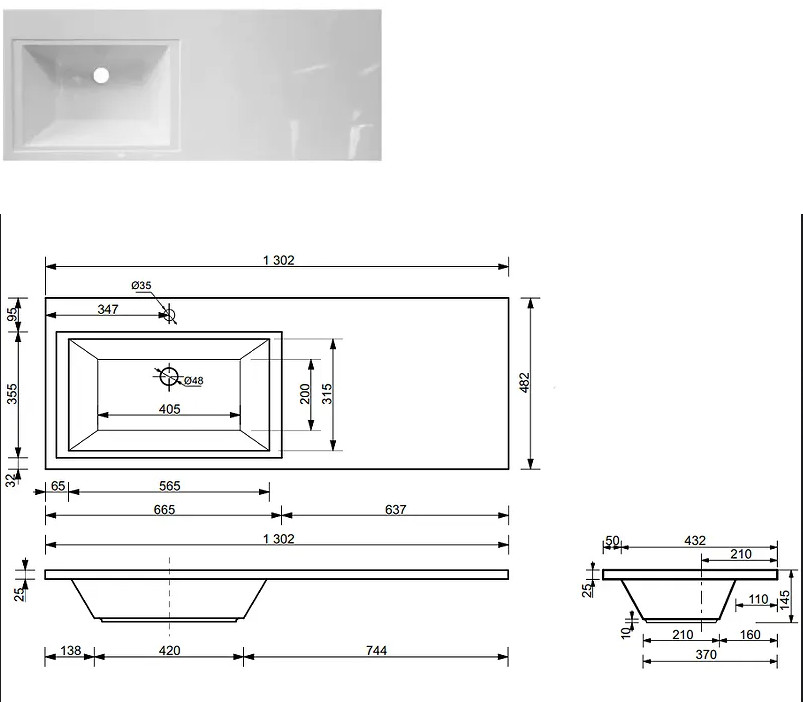 - Тумба с раковиной слева Dallas Luxe 1300 навесная 1 длинный ящик