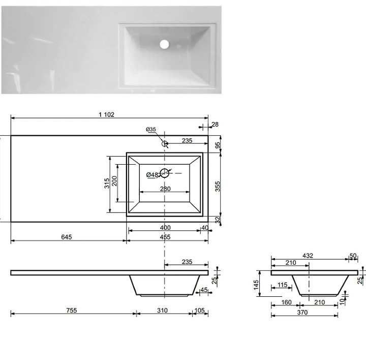 - Тумба с раковиной справа Dallas Luxe 1100 навесная 1 длинный ящик