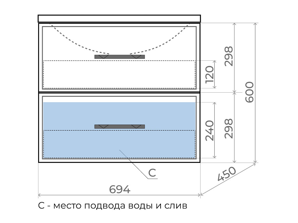 - Выдвижные ящики изготовлены из влагостойкой ЛДСП.