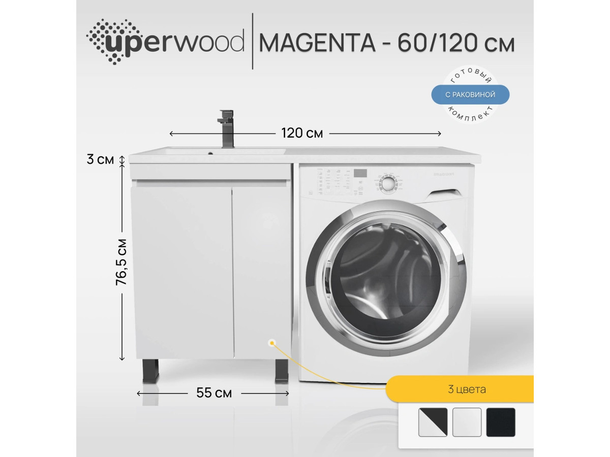 Тумба с раковиной Uperwood Magenta 60-120 см напольная белая с дверцами левая
