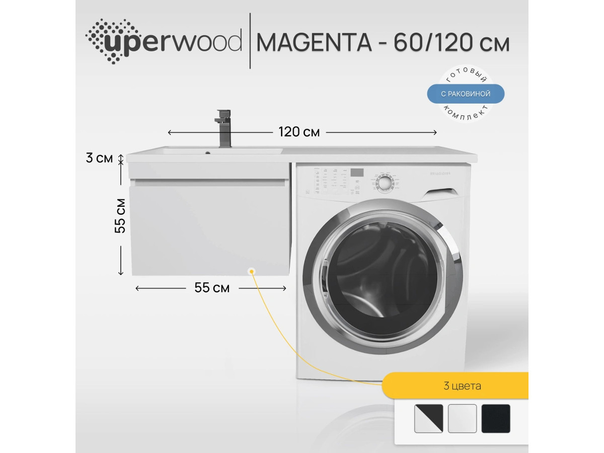 - Тумба с раковиной Uperwood Magenta 60-120 см подвесная белая выдвижной ящик левая