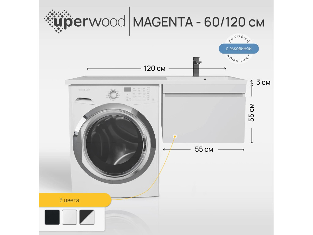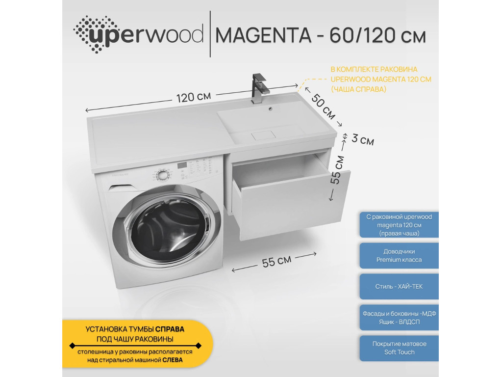 Тумба с раковиной Uperwood Magenta 60-120 см подвесная белая выдвижной ящик правая