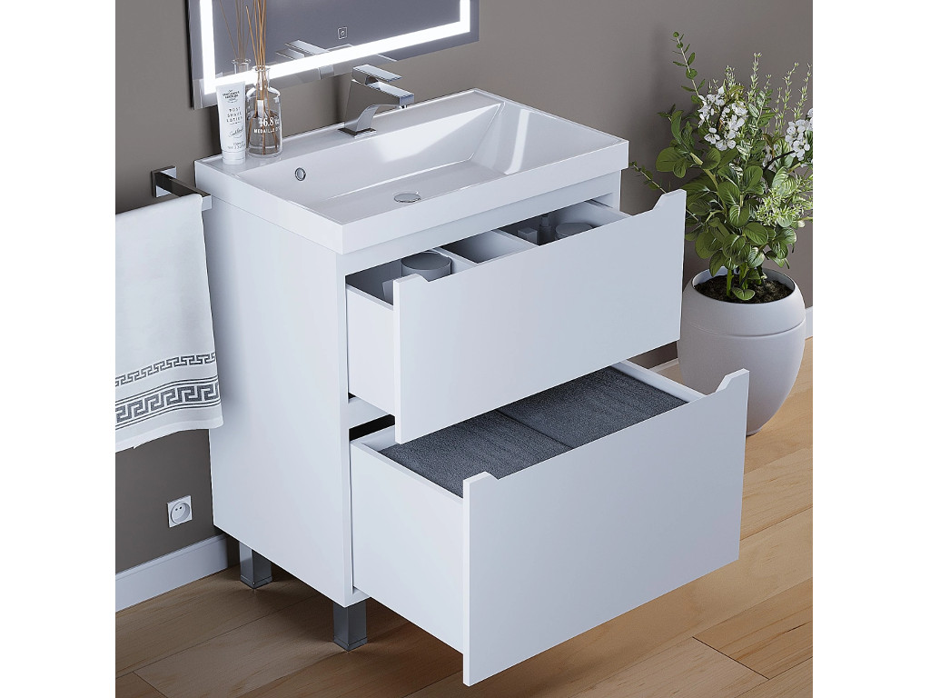 Тумба с раковиной Uperwood Tanos 2 ящика напольная 70 см белая