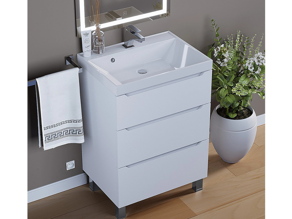 - Тумба с раковиной Uperwood Tanos 3 ящика напольная 60 см белая