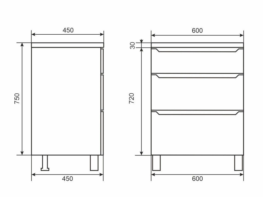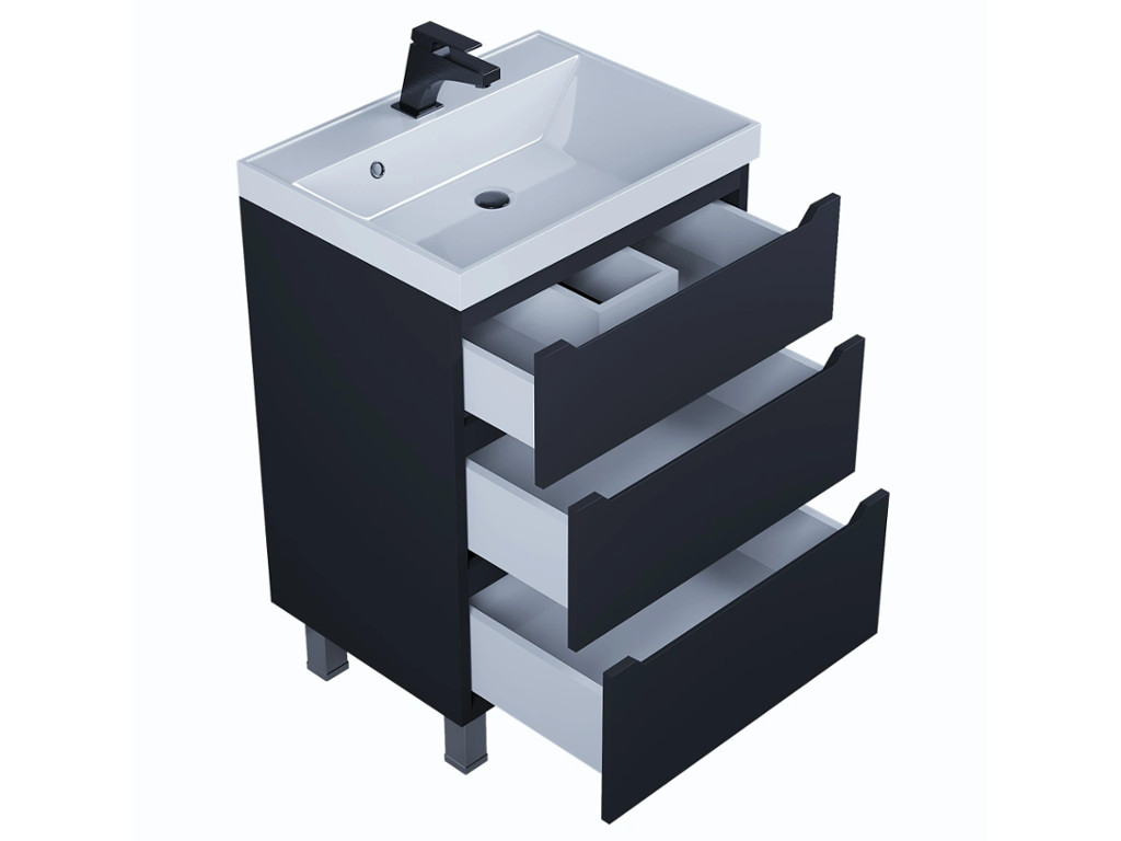 - Тумба с раковиной Uperwood Tanos 3 ящика напольная 60 см черная