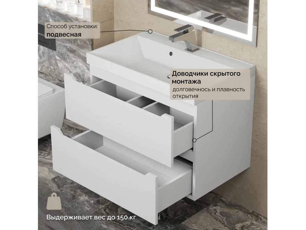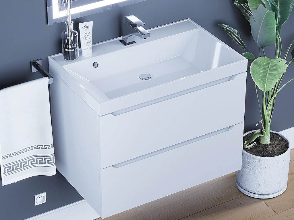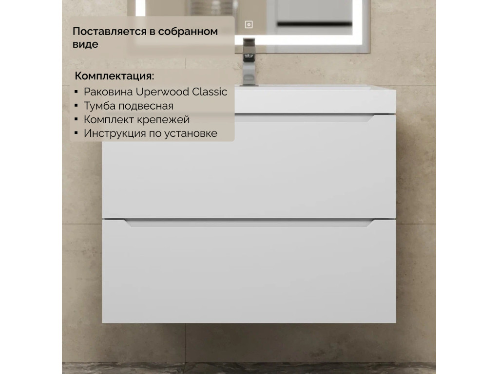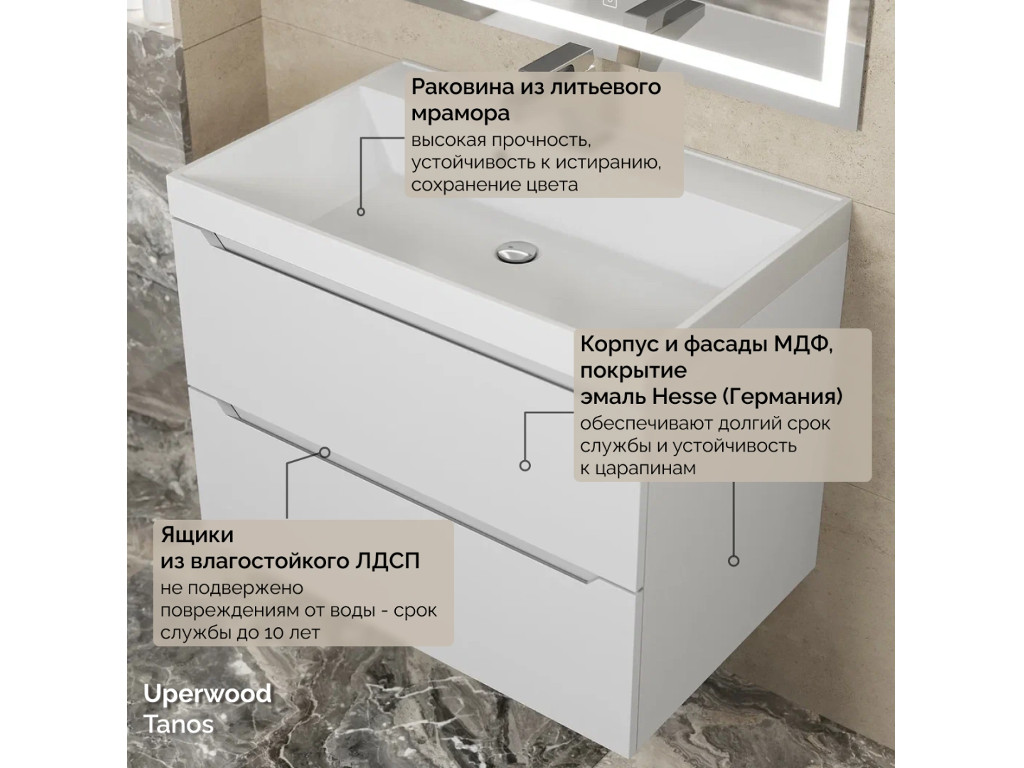 - Тумба с раковиной Uperwood Tanos матовая белая 70 см