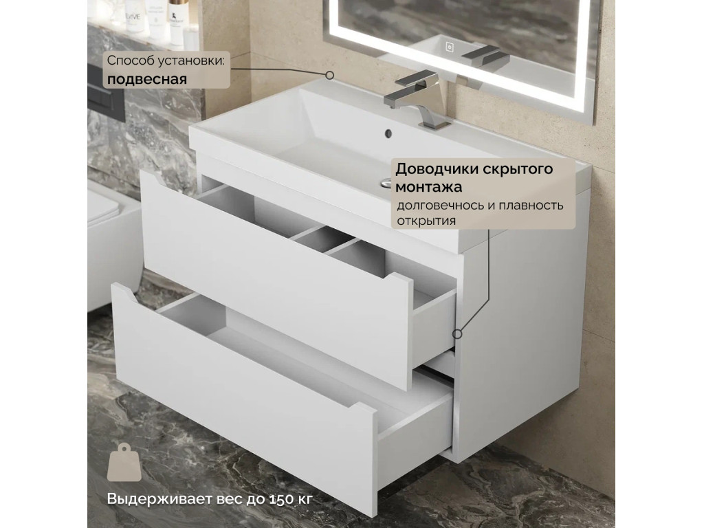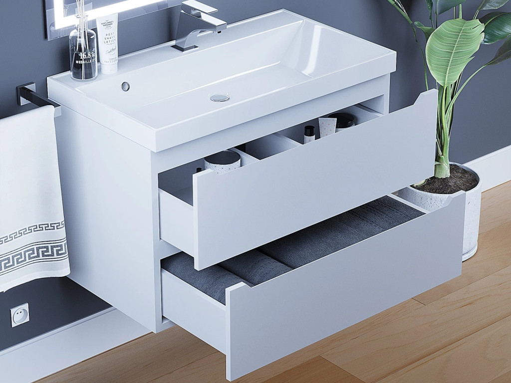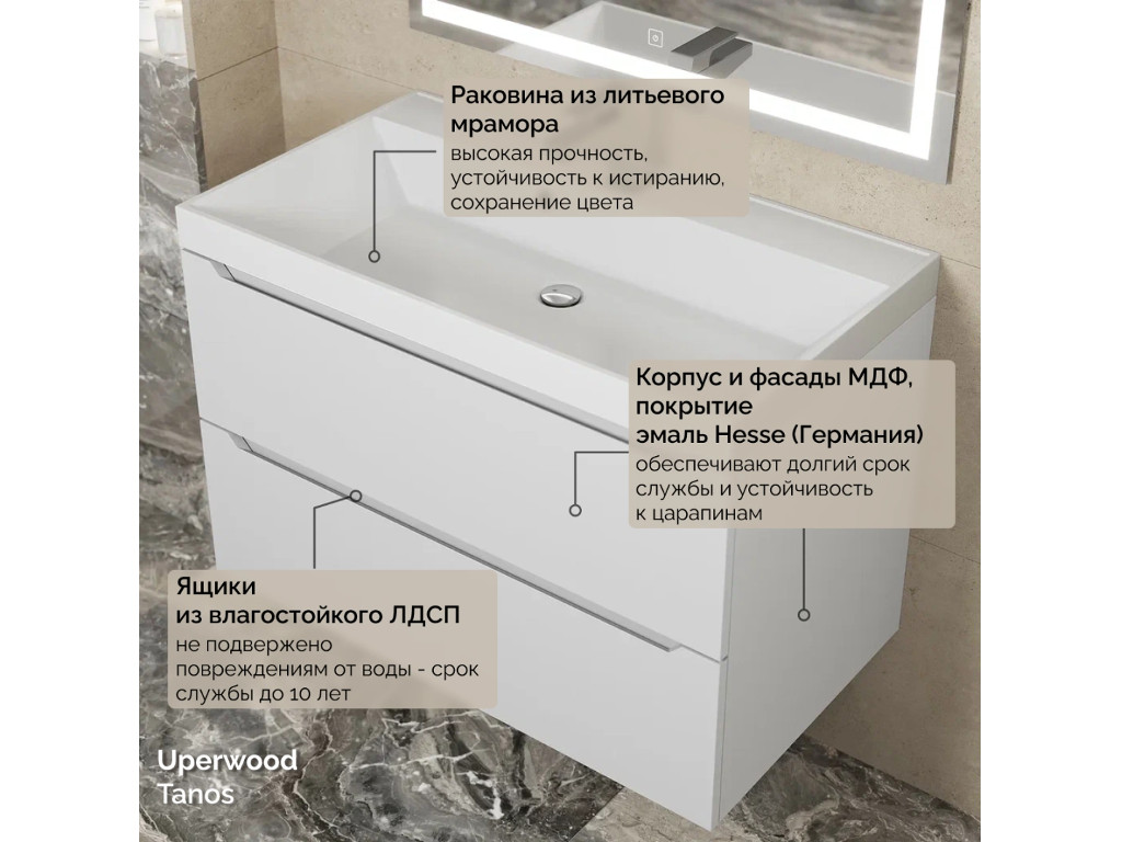 - Тумба с раковиной Uperwood Tanos матовая белая 80 см