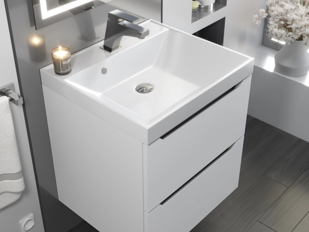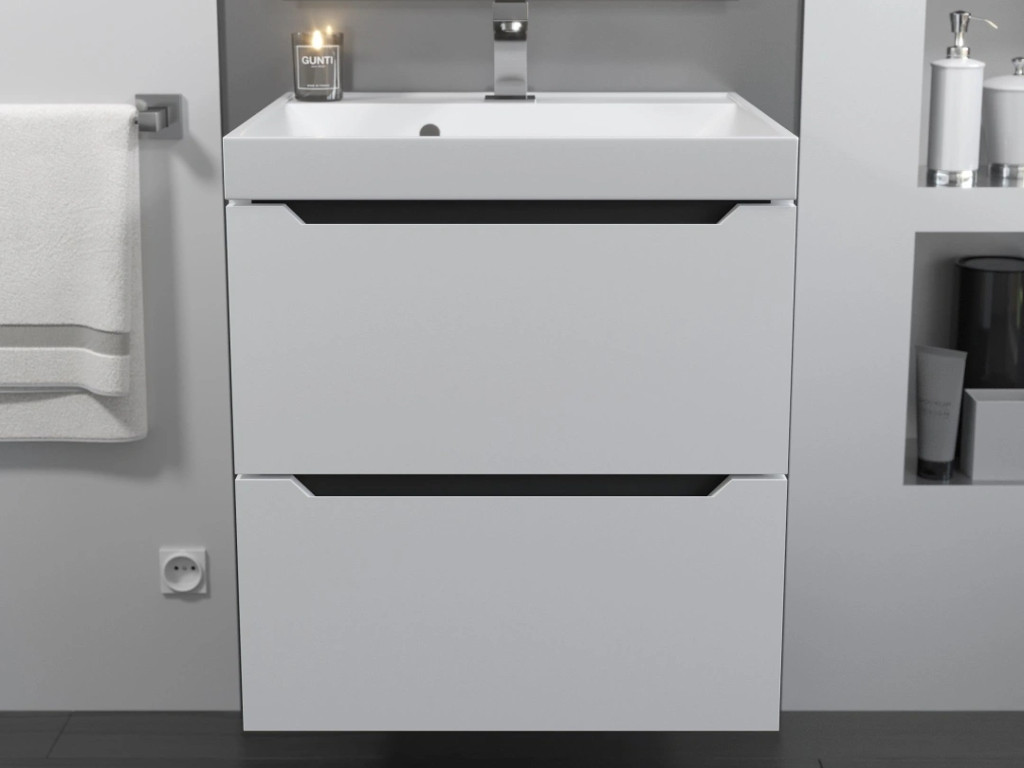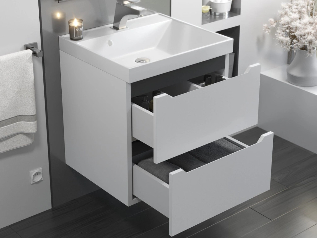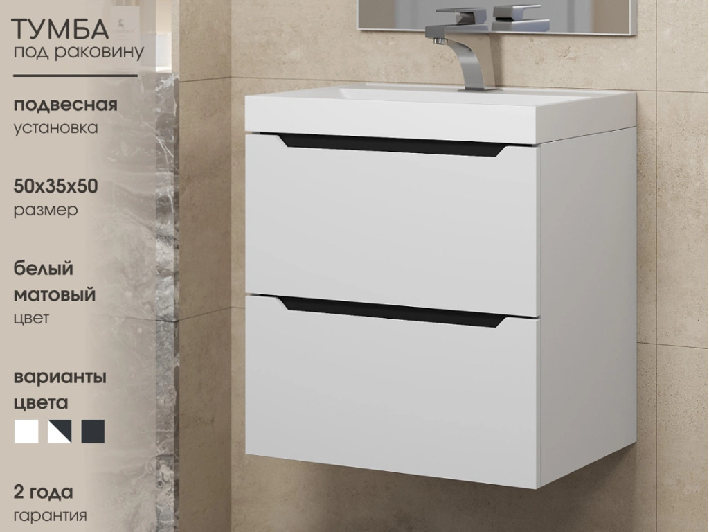 - Тумба с раковиной Uperwood Tanos матовая белая/графит 50 см