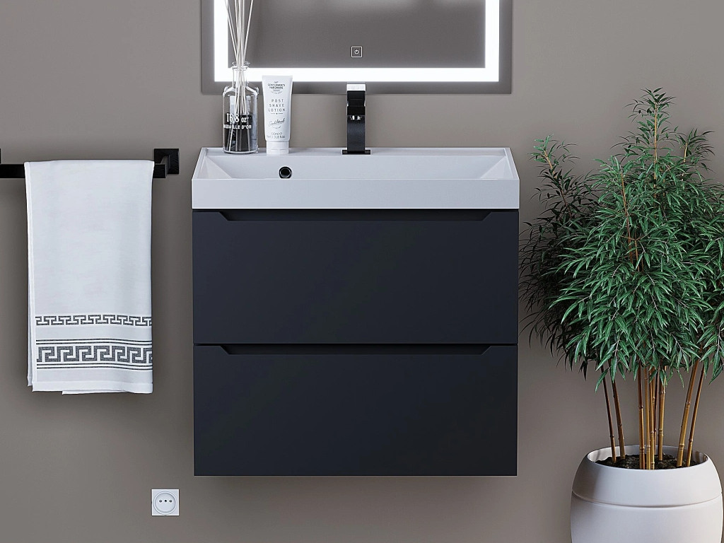 - Тумба с раковиной Uperwood Tanos матовая черная 50 см