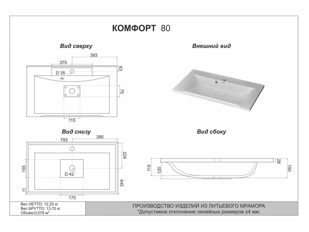 - глубина 450 мм