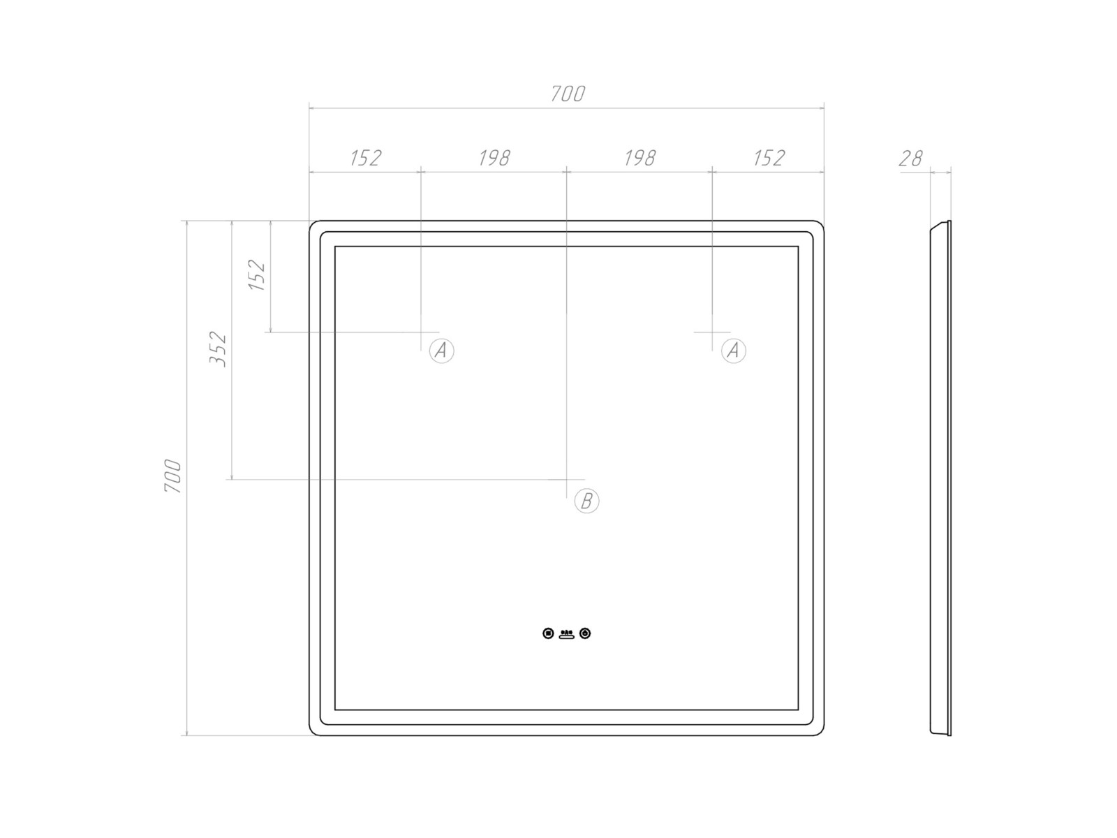 Подсветка фронтальная по периметру, с цветовой температурой 5000К – нейтральный белый, управление подсветкой сенсорное/датчик присутствия (1.5 м.)