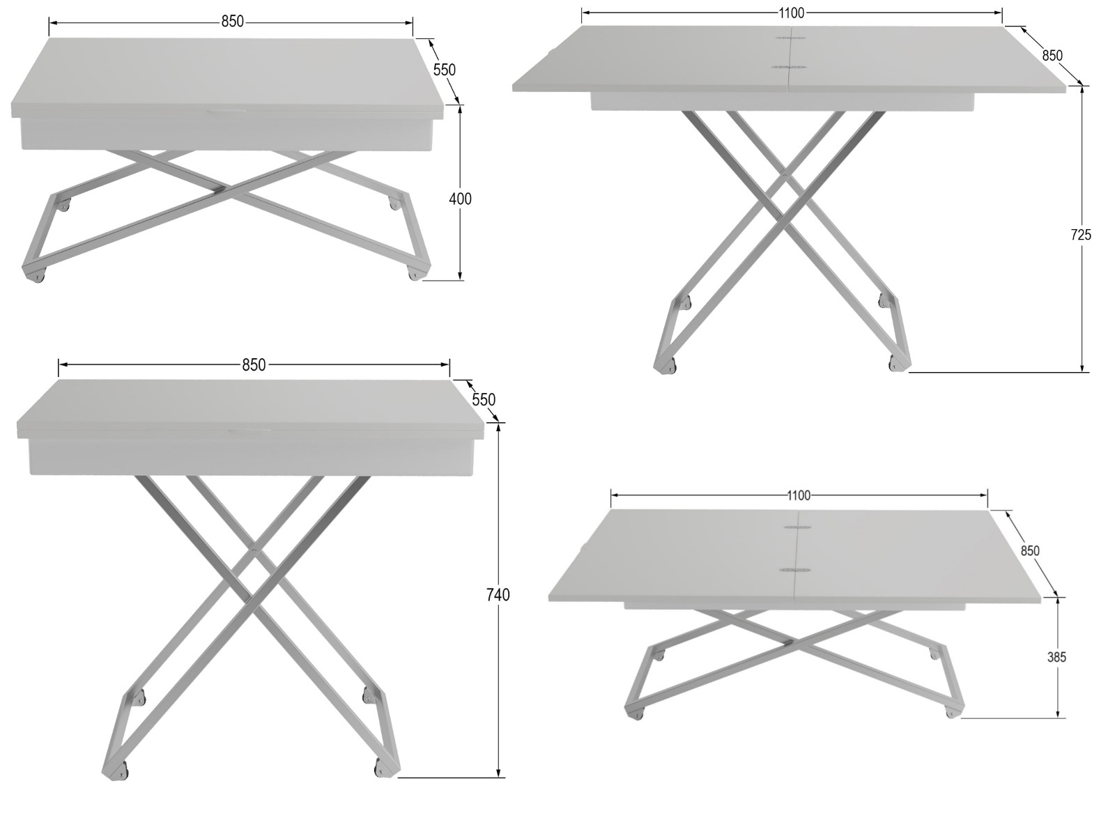 По высоте стол имеет два положения: 400 мм и 725 мм.