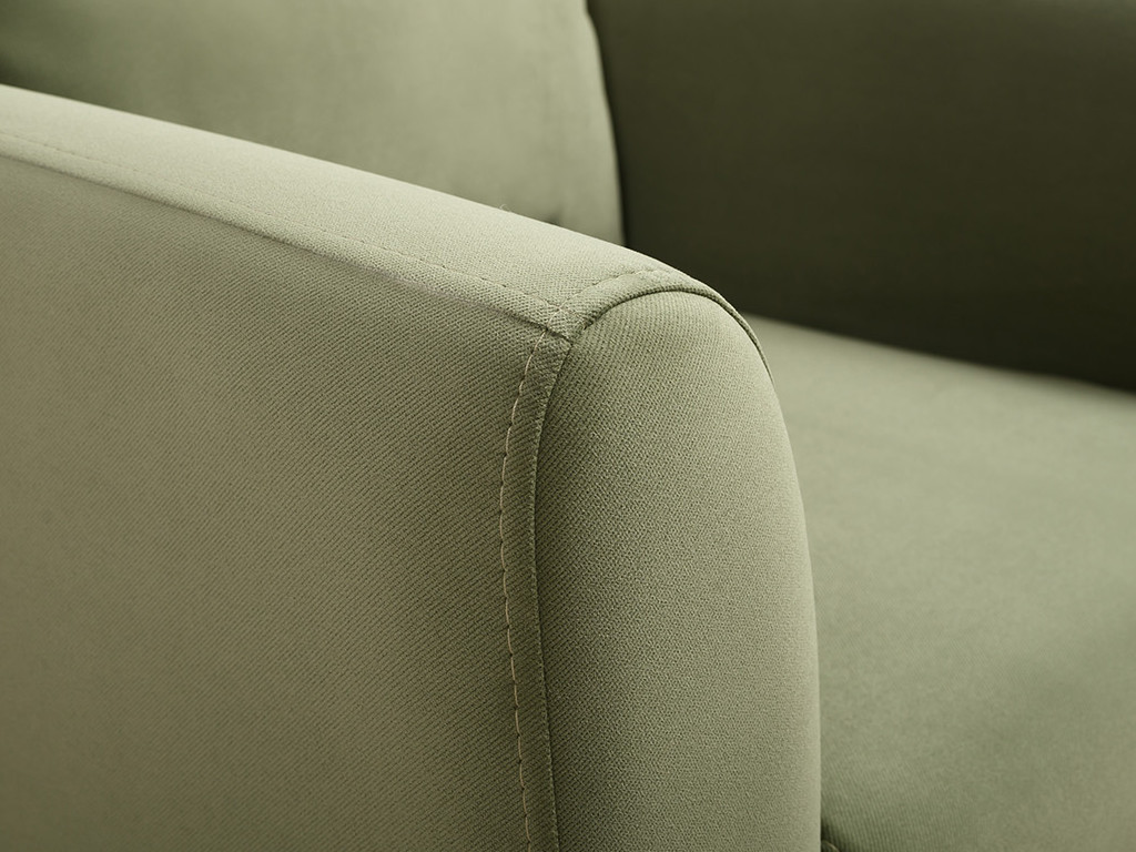 Декоративная утяжка на спинке кресла, декоративная подушка в цвете кресла, металлические опоры переходят в декоративный элемент подлокотника