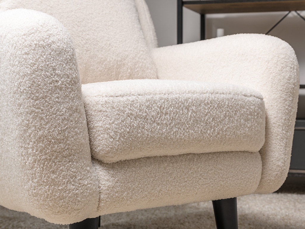 Декор: Ткань букле делает кресло особенно уютным и мягким. Приспинная подушка в цвете кресла