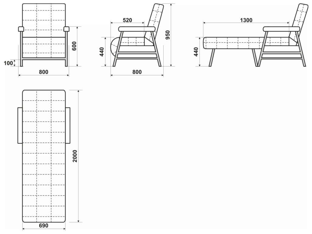 Размеры дивана (мм): 800*800*950