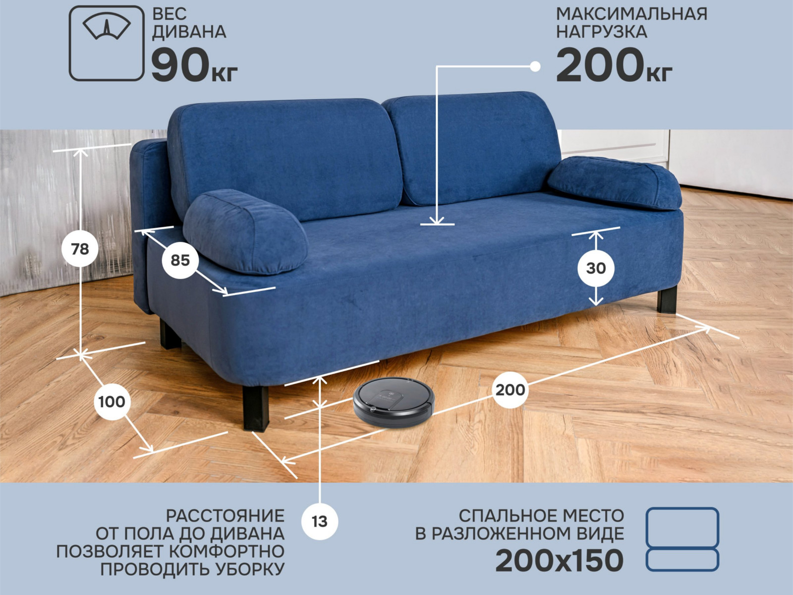 - Спальное место: 1500х2000 мм