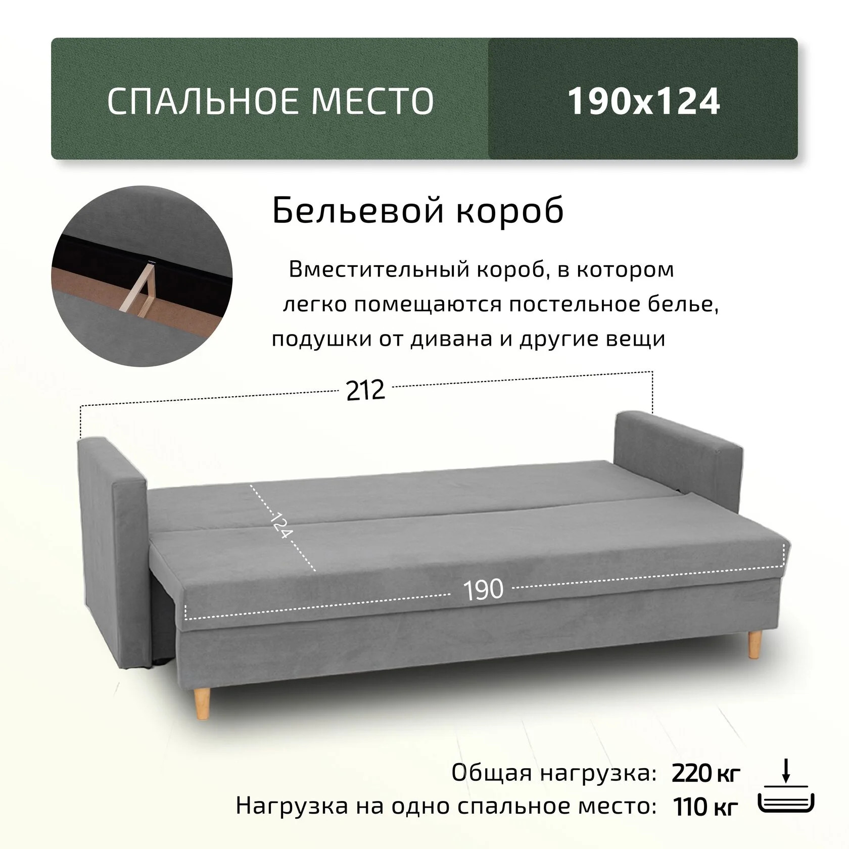 Спальное место, мм: 1240х1900 мм
