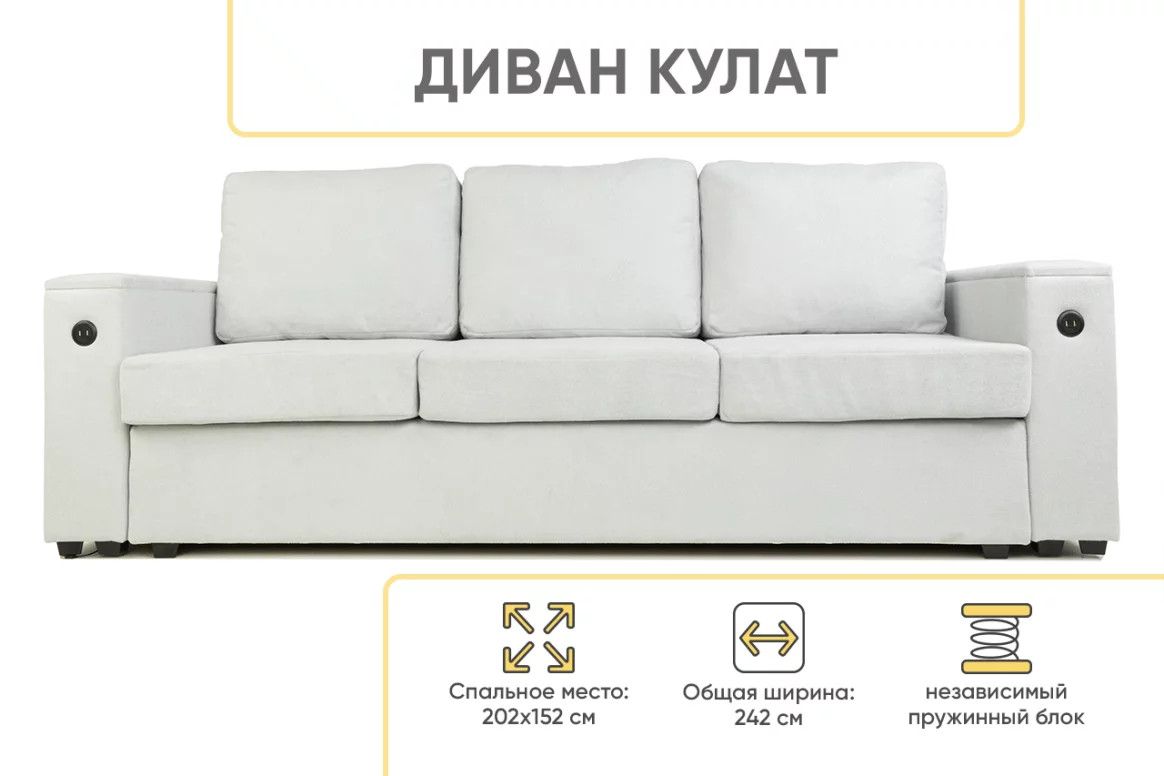 Диван Кулат с пружиной змейкой Серый Moss 900