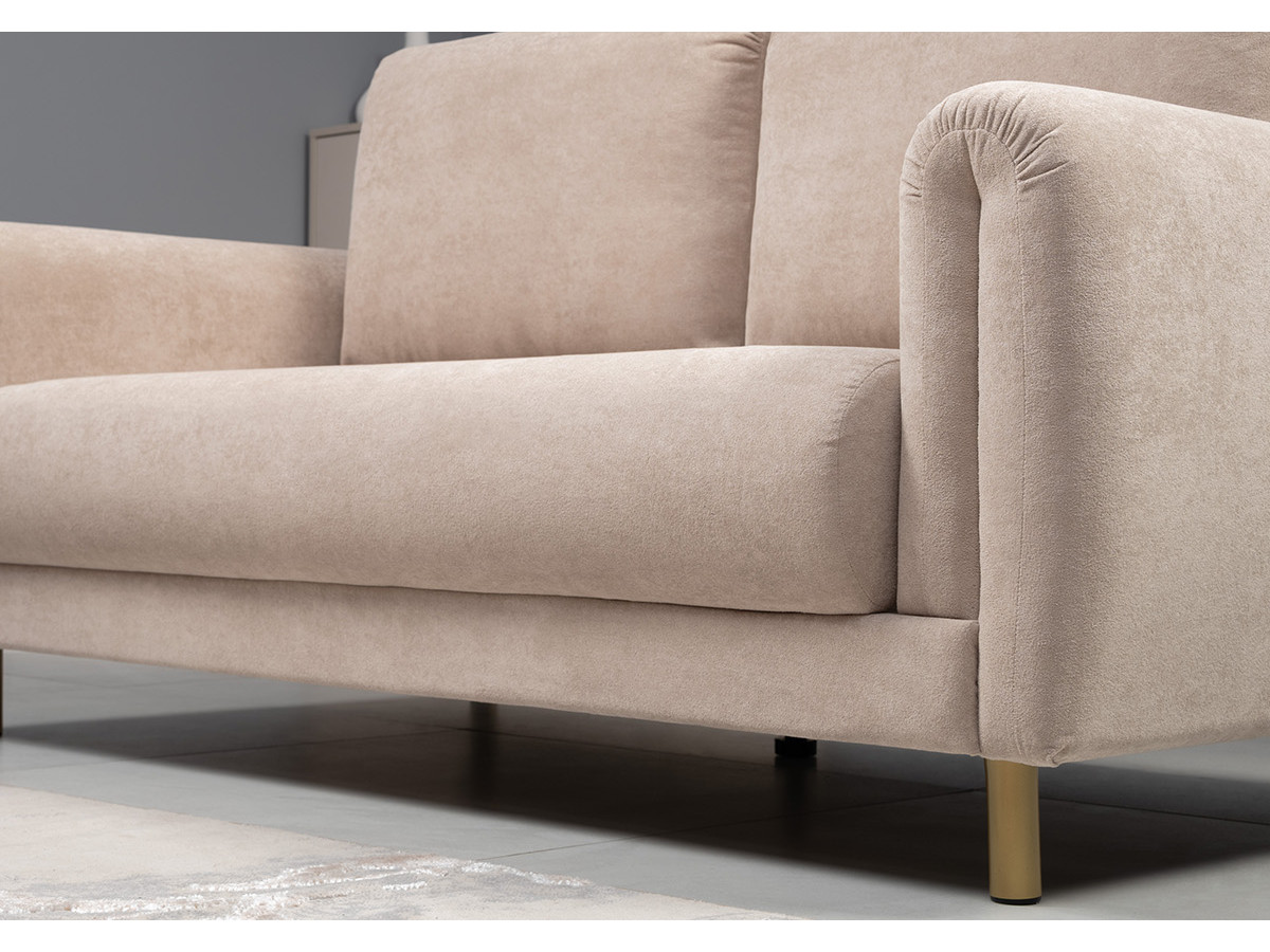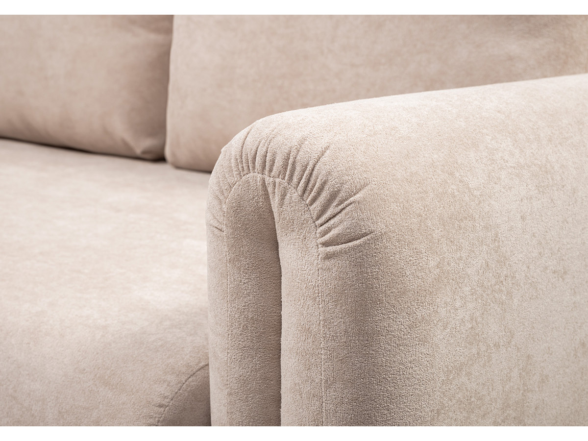Декоративные утяжки и складки на подлокотниках придают дивану неповторимый шарм, который станет изюминкой любого интерьера — от классического до современного. Приспинные подушки со сборкой в верхней части.
