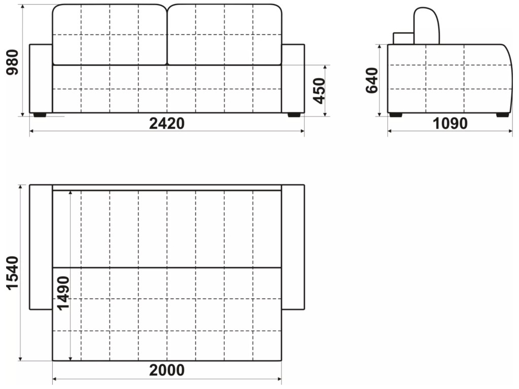 Размеры дивана (мм): 2420*1090*980