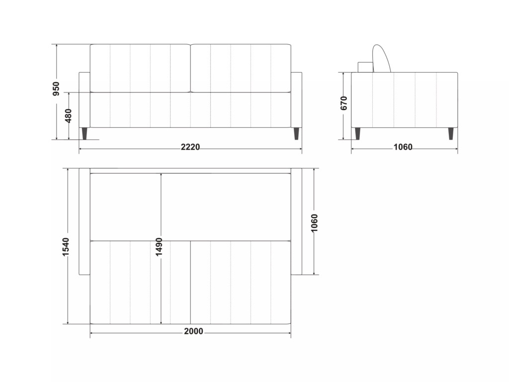 Размеры дивана (мм): 2220*1060*950