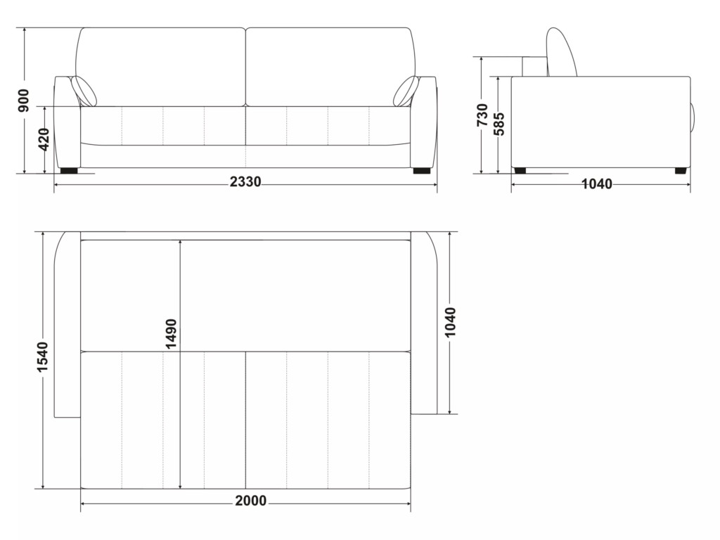 Размеры дивана (мм): 2330*1040*900