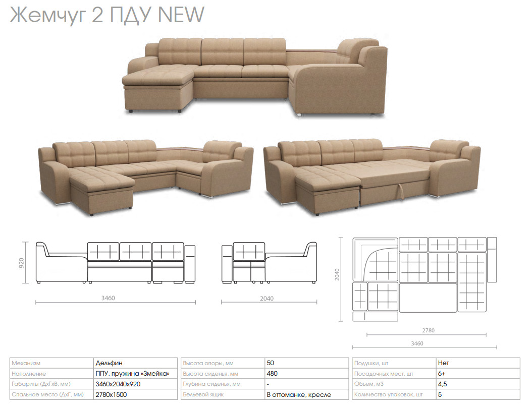 - Диван Жемчуг 2 ПДУ NEW