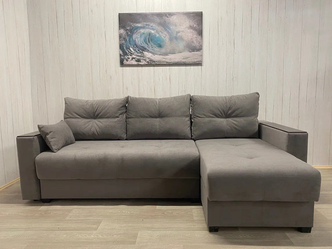 Декор: двойная строчка, утяжки. Три приспинные подушки и одна декоративная в комплекте.