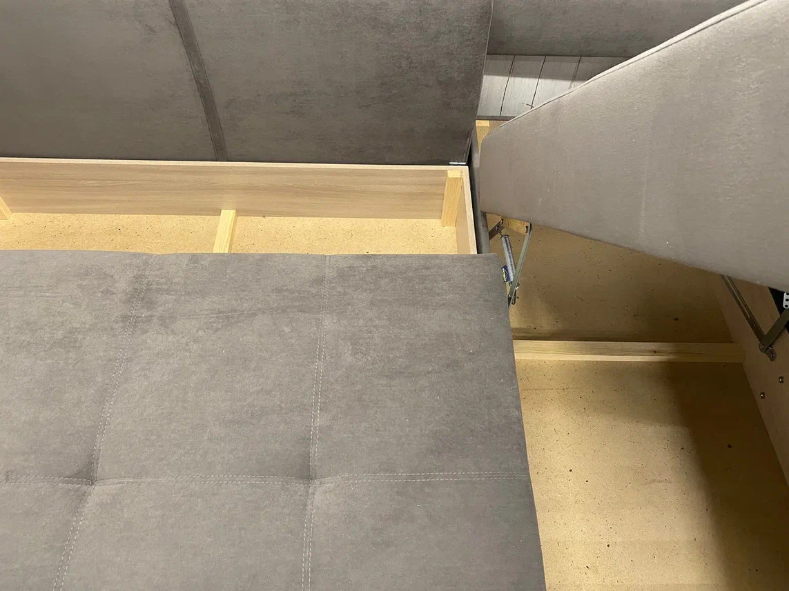 Вместительных два короба для белья. Не требует отодвигания от стены при раскладывании.