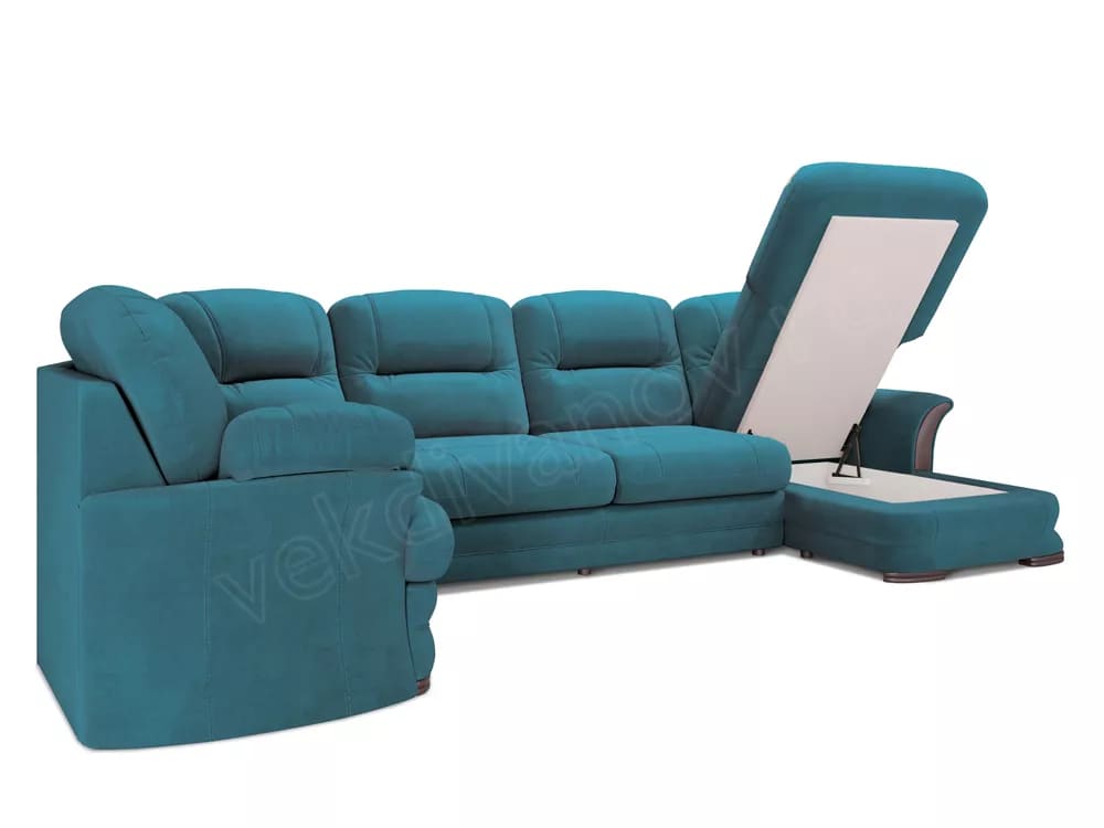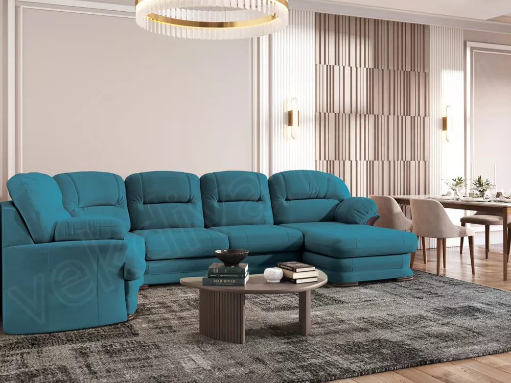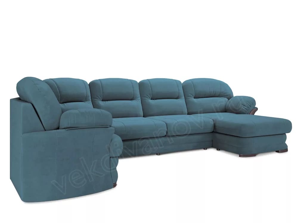 - Диван угловой большой П-образный Квин 6 Newtone azure