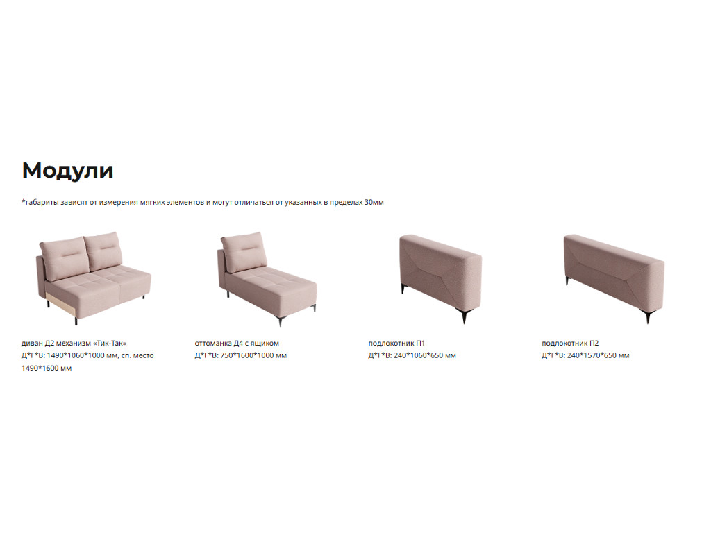 Высота дивана по подушке: 1000 мм