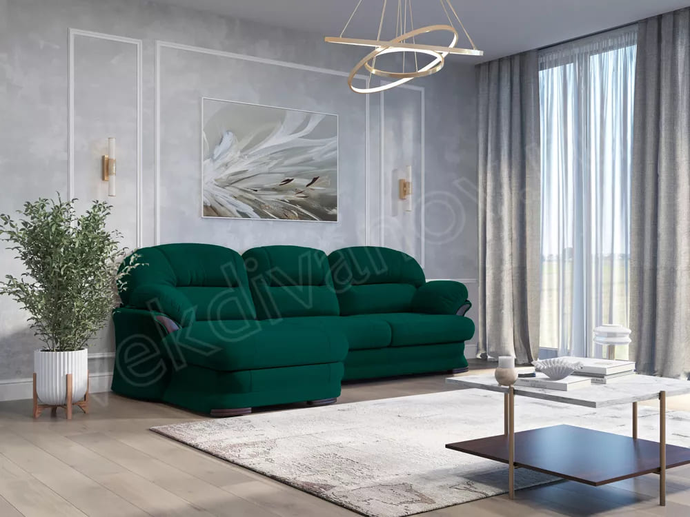 Диван угловой Атлант без столика велюр Neo 23 грин зеленый