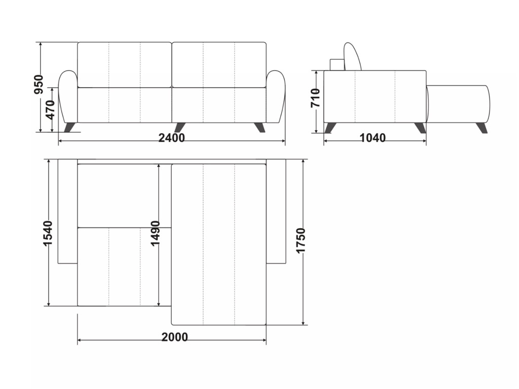 Размеры дивана (мм): 2400*1750*950