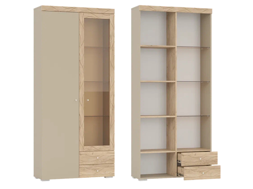 - Шкаф 2-х дверный со стеклом и двумя ящиками Палермо 6-87002