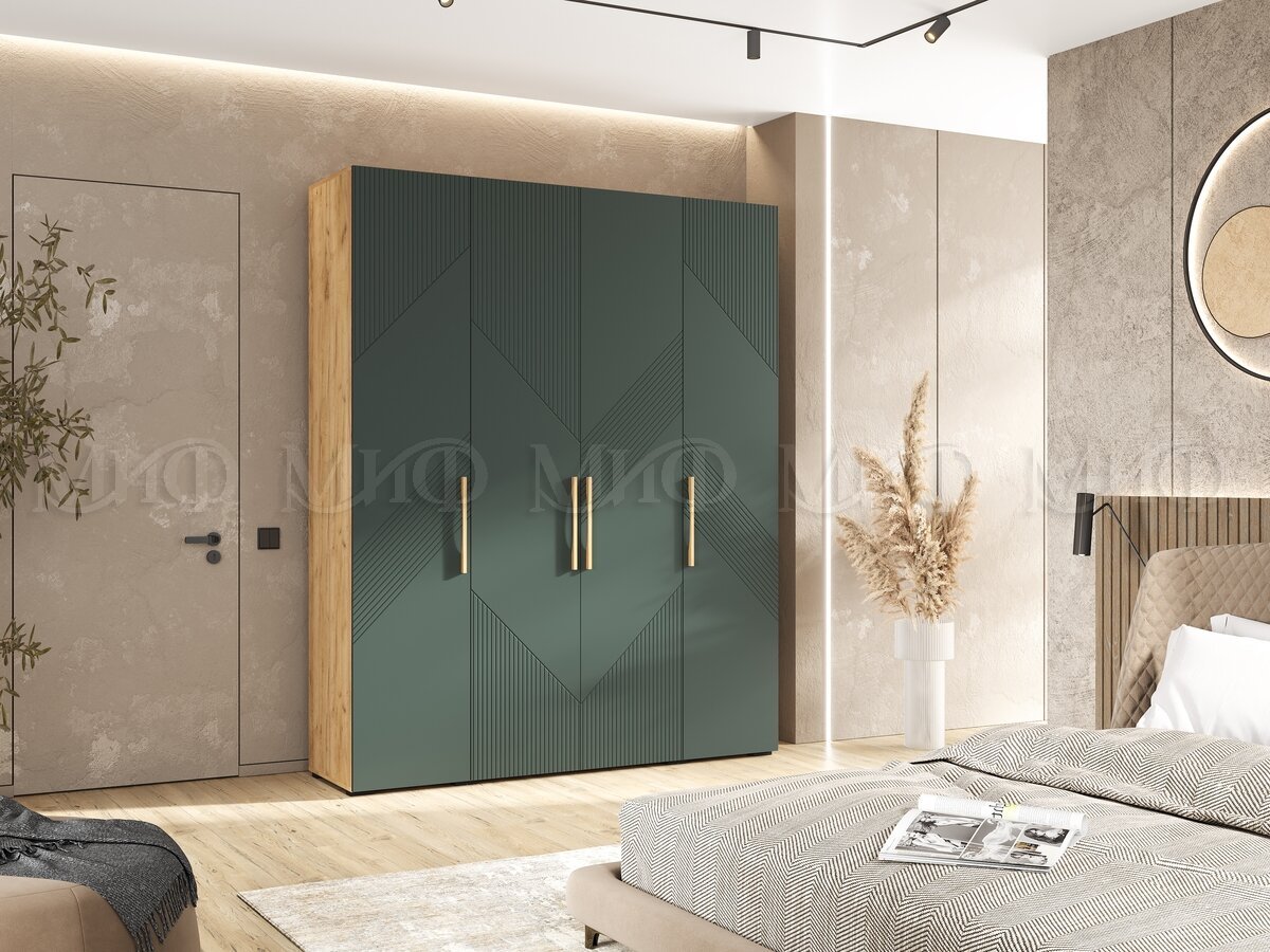 - Шкаф 4-х створчатый (1800) Ирис Браш Мени Грин, Дуб Крафт