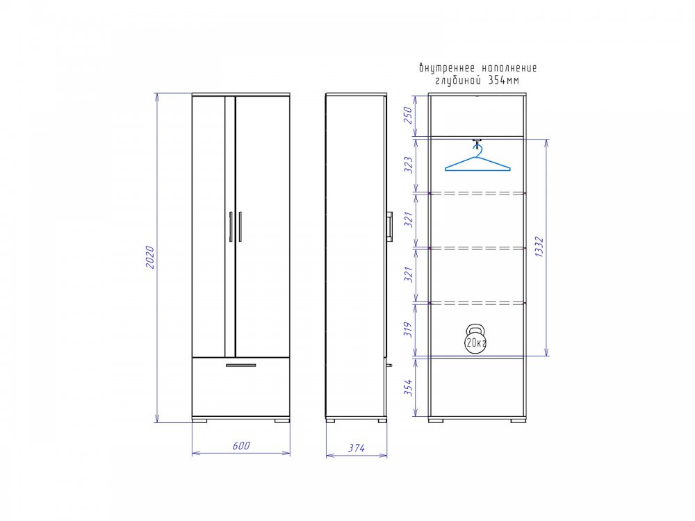 Размер ШхГхВ: 600*380*2020 мм