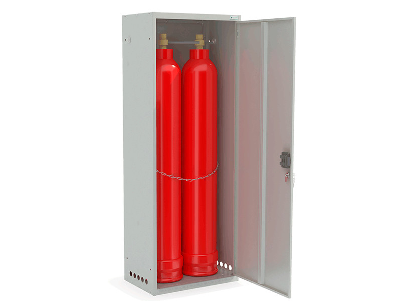 В шкафах серии ШГР 40-1 и ШГР 40-2 для надежного крепления баллонов предусмотрены один карабин, длиной 50 мм (пожарный) и две цепи. В модели ШГР 40-1 цепь длиннозвенная длиной 416 мм, в модели ШГР 40-2 длиной 520 мм.