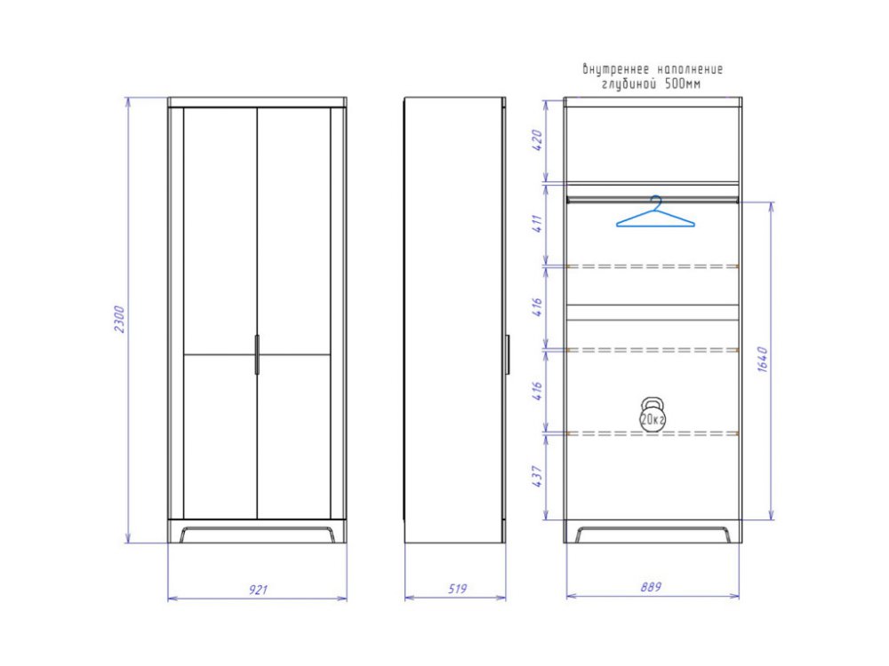 Размер ШхГхВ: 921*519*2100 мм