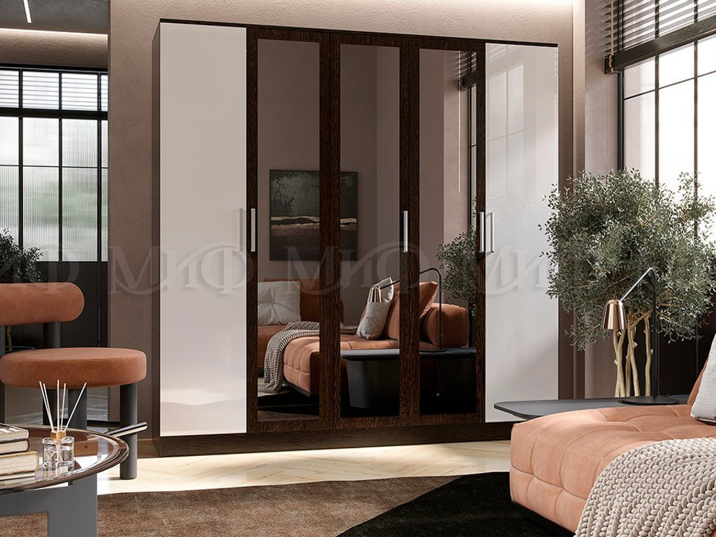 - Шкаф для одежды 5-дверный Мартина Белый, венге
