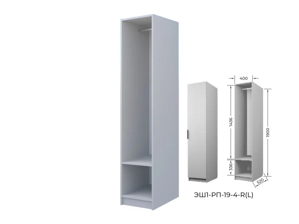 - Шкаф для одежды со штангой Экон ЭШ1-РП-19-4-R с зеркалом