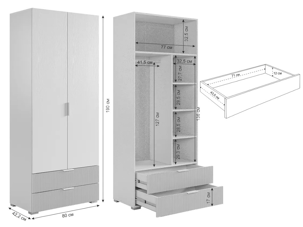 Шкаф двухдверный 120.01 Зефир серый